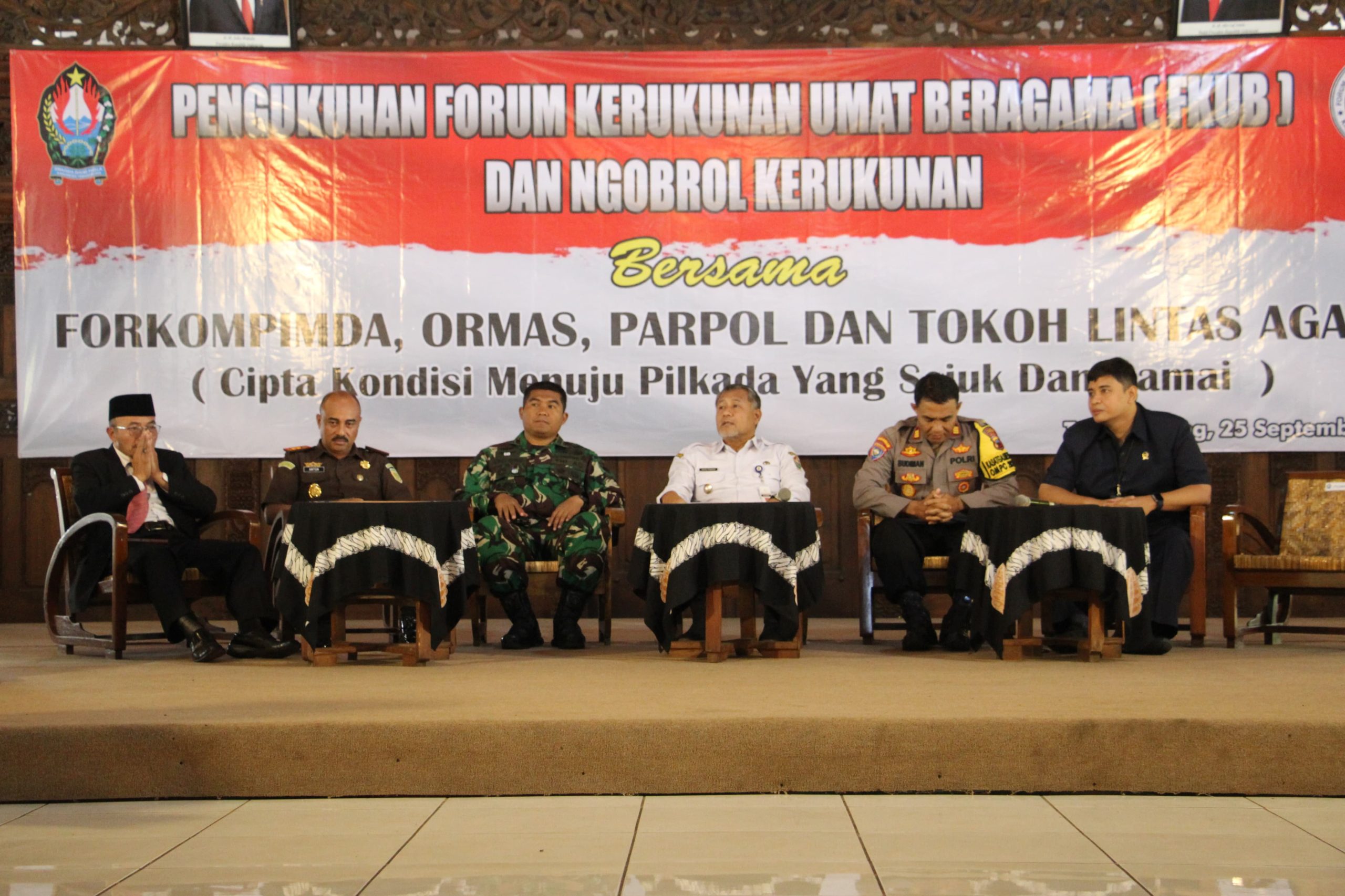 TEMANGGUNG – Komandan Komando Distrik Militer (Kodim) 0706/Temanggung Letkol Inf Sriyono, S.I.P., Hadiri Pengukuhan Forum Kerukunan Umat Beragama (FKUB) Ngobrol Kerukunan. Kegiatan tersebut berlangsung di Pendopo Pangayoman Kabupaten Temanggung, Rabu 25 September 2024.