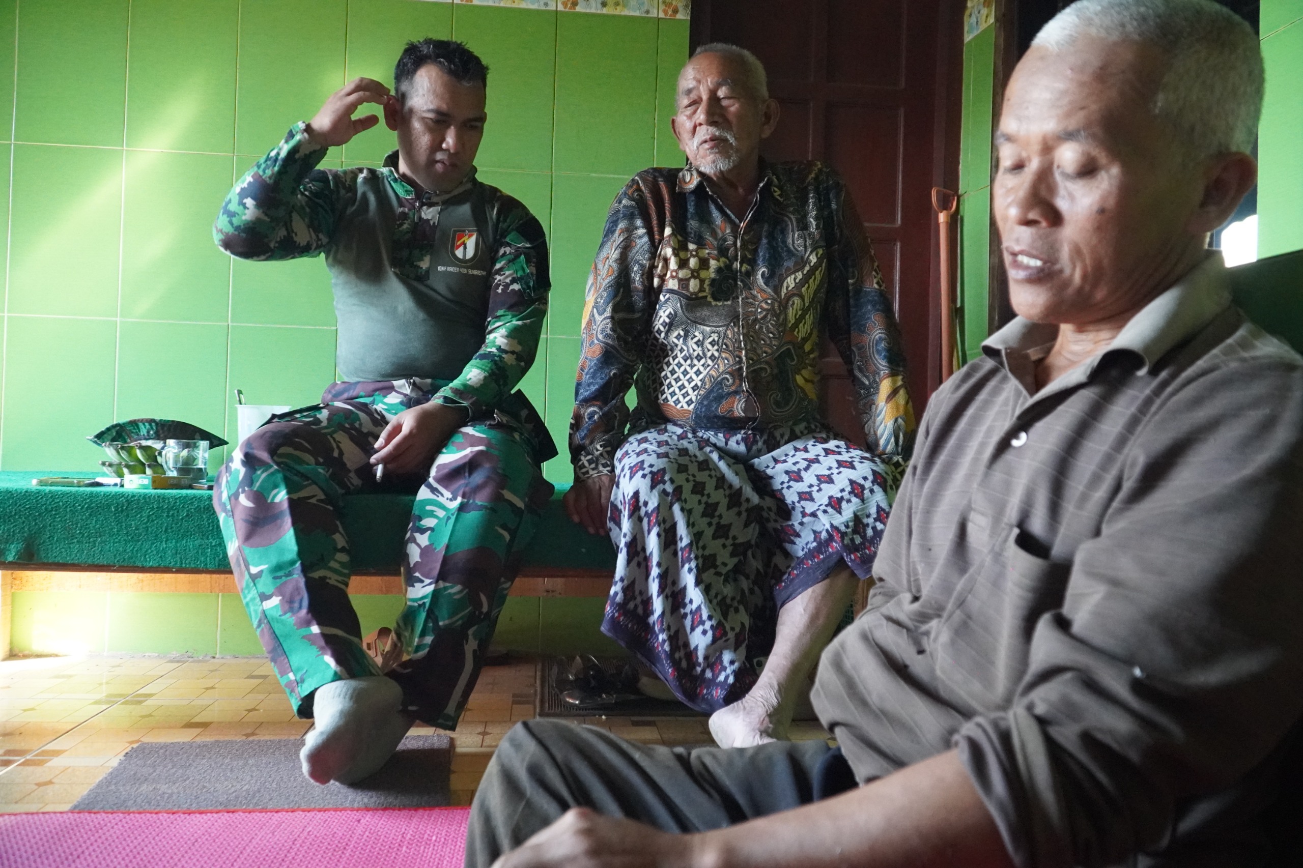 TEMANGGUNG – Di sela-sela padatnya tugas fisik pengecoran jalan di Desa Banaran, Kecamatan Tembarak, Selasa 28/07/25 beberapa anggota Satgas TMMD Reguler ke-125 Kodim 0706/Temanggung tampak bersantai sejenak di rumah Bapak Solikin (58). Namun istirahat kali ini bukan sekadar melepas lelah mereka memanfaatkannya untuk melakukan komunikasi sosial (Komsos) yang sarat makna.