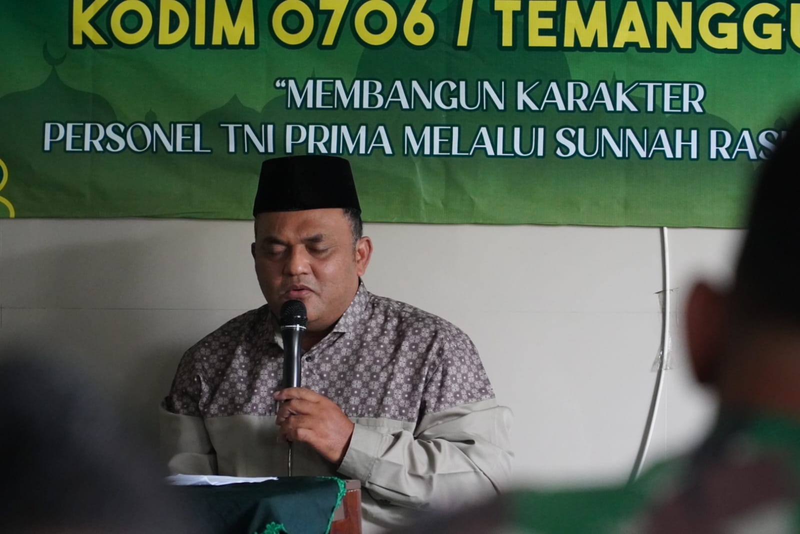 Acara ini dihadiri oleh seluruh personel TNI, mulai dari perwira, bintara, tamtama, hingga PNS, serta pengurus Persit Kartika Chandra Kirana Kodim Temanggung. Ustadz Sertu Akhmad Husen dari Koramil 04/Ngadirejo Kodim Temanggung dipercaya untuk memberikan tausiyah.