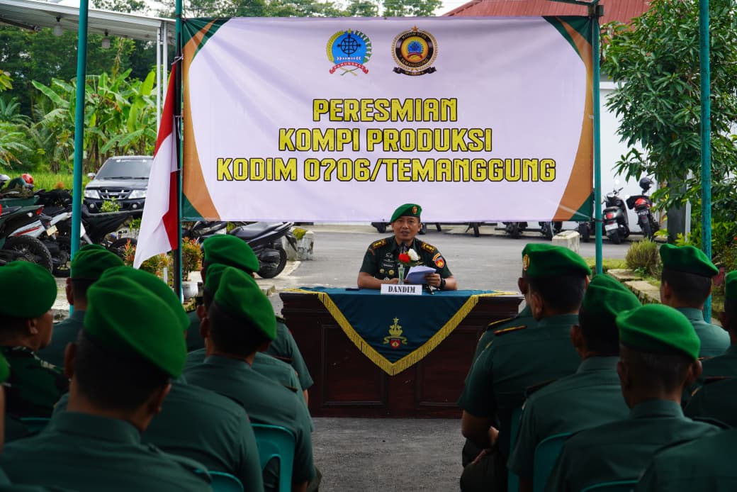 Peresmian dilakukan langsung oleh Komandan Kodim 0706/Temanggung, Letkol Inf Hermawan Adi Nugroho, M.Han., ditandai dengan pemotongan pita sebagai simbol dimulainya operasional Kompi Produksi. Kegiatan tersebut turut dihadiri Kasdim Mayor Cba Agus Jumawan, para Perwira Staf, Danramil, serta Bintara dan Tamtama jajaran Kodim 0706/Temanggung.
